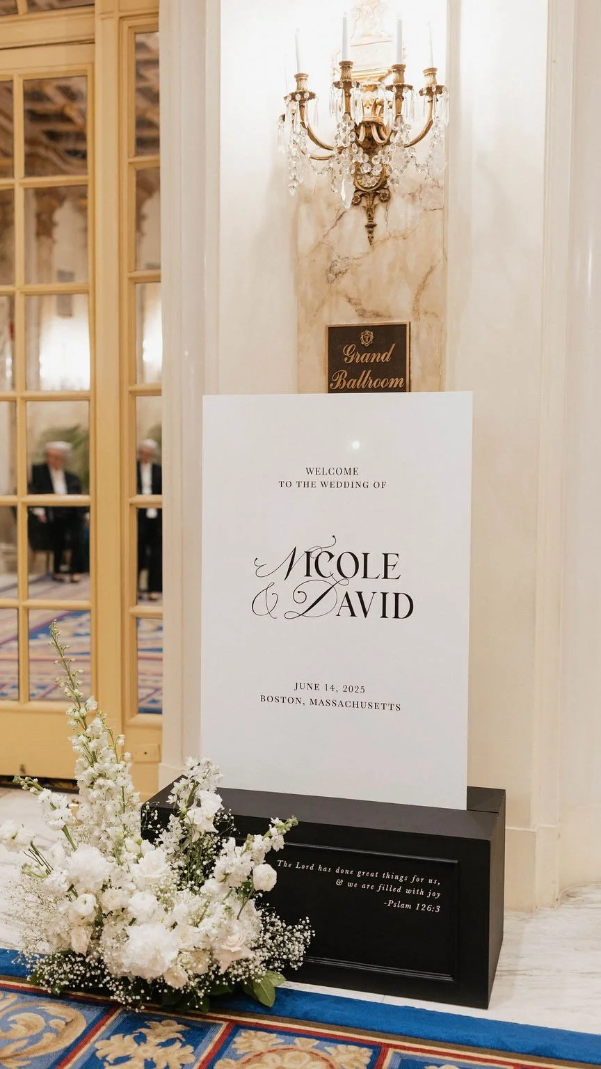 From elegant welcome signs to statement seating charts and every thoughtful detail in between, each piece is crafted with intention, refined design, and a seamless, full service experience.